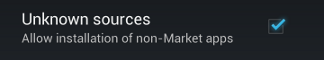 Users must enable the Unknown sources setting before they can install apps not downloaded from the Google Play store as shown below.